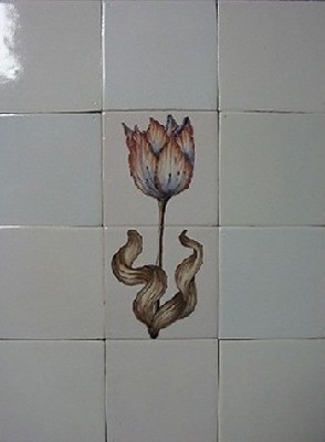 Tulp gekleurd op twee tegels